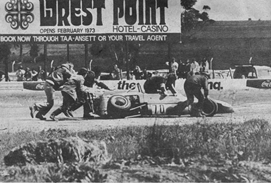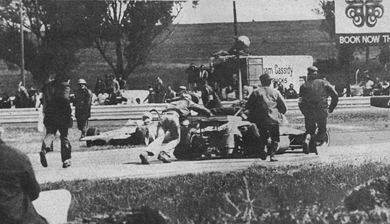 Peter Finch Comaro avoiding the spinning Bob Jane
