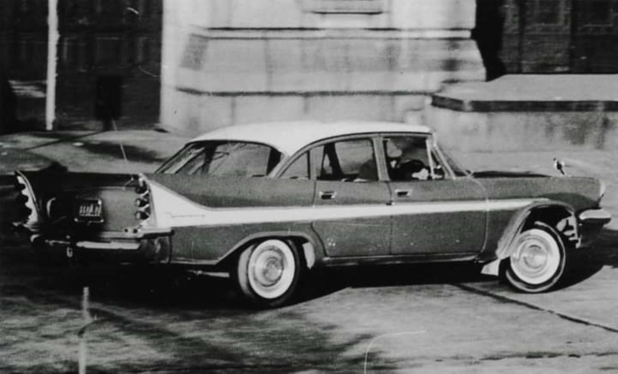 " I asked John Windelburn what the De Soto was that he drove in this Pukekohe Car Club Straight Sprint at Hullbright Road in October 1967.He sent me this photo of the car. It was a RHD 1958 De Soto Firesweep, one of only 2 in NZ.The B&W photo is John having a go at the "Braking and Acceleration Test" at the Auckland Railway Station The Auckland Car Club's Hepolite Trial competitors had to complete that test at the end of the event. John hadn't done the Trial but if there was a gap between competitors arriving the officials would let various club members have a go. John set the joint fastest time with a 3.8 Jaguar. ".