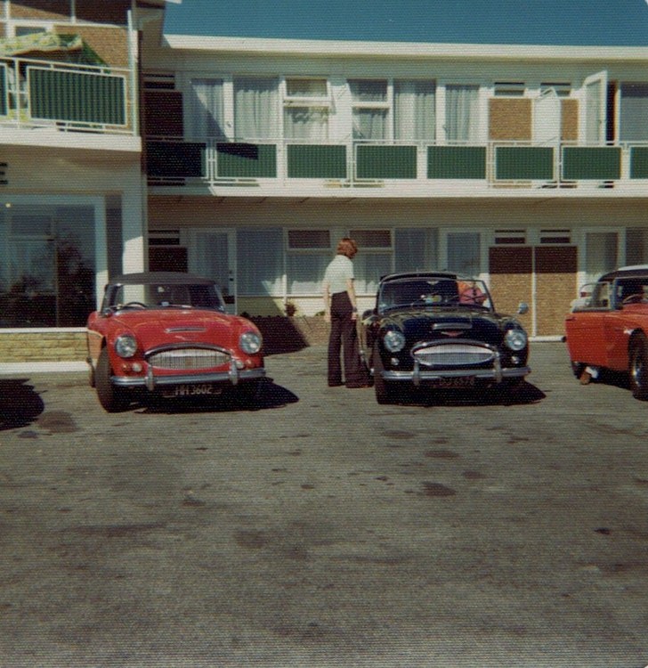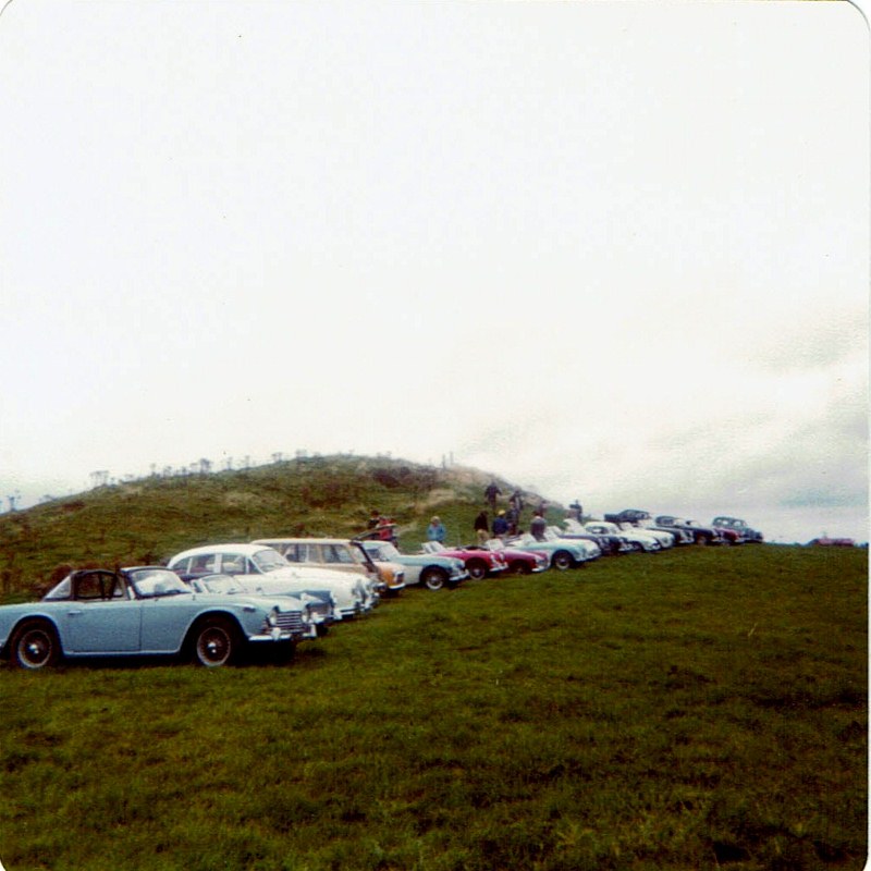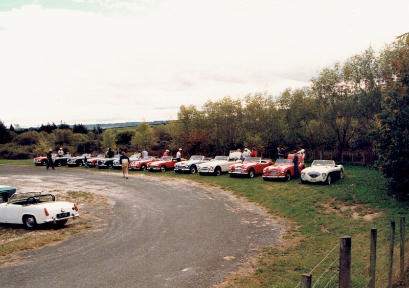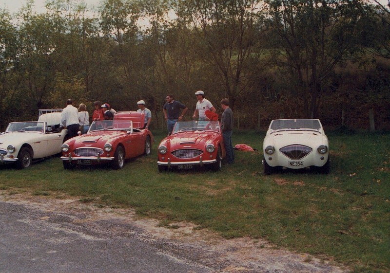 Here is a TR4 ( mine ) a Jaguar, some Healeys and even a Hillman Hunter wagon [ how he got there unsure - must have been a Healey members BJ9 which is a non-Healey in Club terms ]. at Rotorua Rally in 1980.
