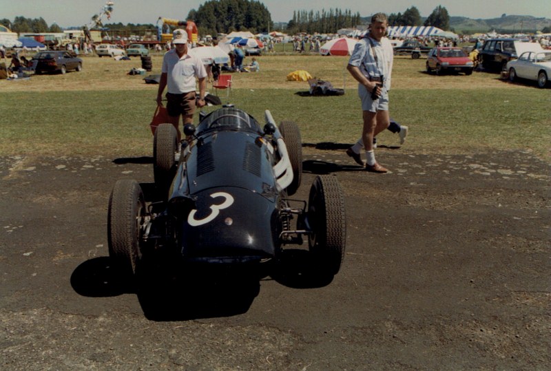 Another car in the photo at the back is the Wylie Javelin which came to New Zealand in 1954 but did not start at the NZ GP meeting that year - was driven by its creator Brian Wylie .in 1984 driven by Bruce Polain - the recent [ 1980's on ]- owner.