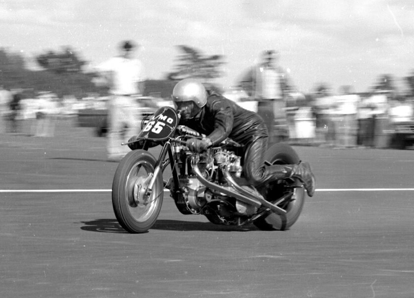 Moving on to Ardmore 1972. Kicking off here is Dave Turner, on his twin 750cc Triumph powered bike.