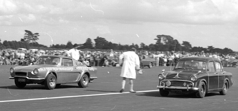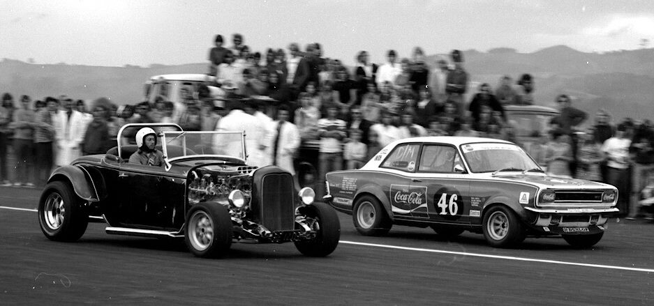 Len Jones in the roadster versus Alan Boyle in the Coke Viva.