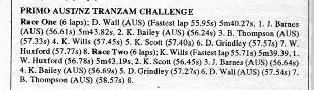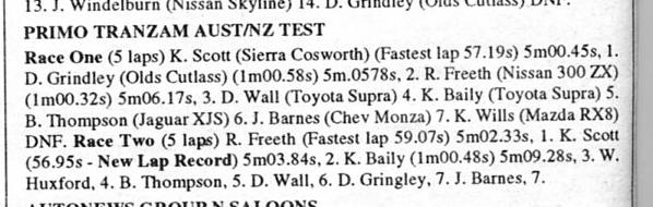 The NZ v Australia Tranzam Challenge was held in 1992. Two races were run at Manfeild, Bay Park and Pukekohe.