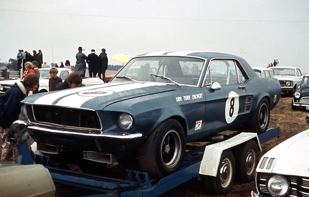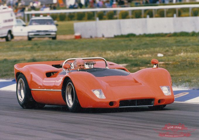 Interesting photo here. This is Bobs McLaren M6B, which he owned from new. Denny Hulme is doing some demo laps with the car. What a great photo!