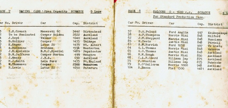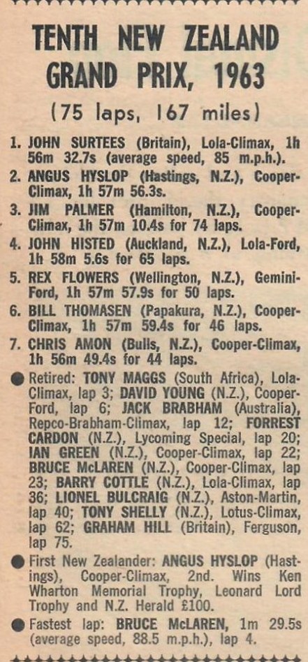 This the results from that First Pukekohe Grand Prix.. Graham Woods archives.