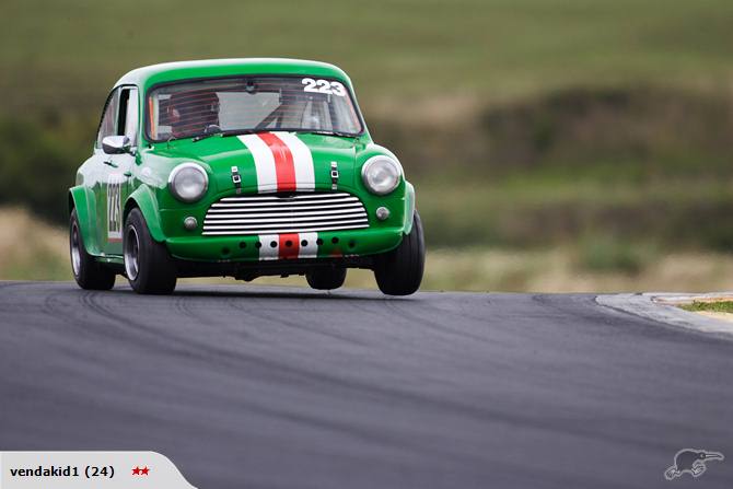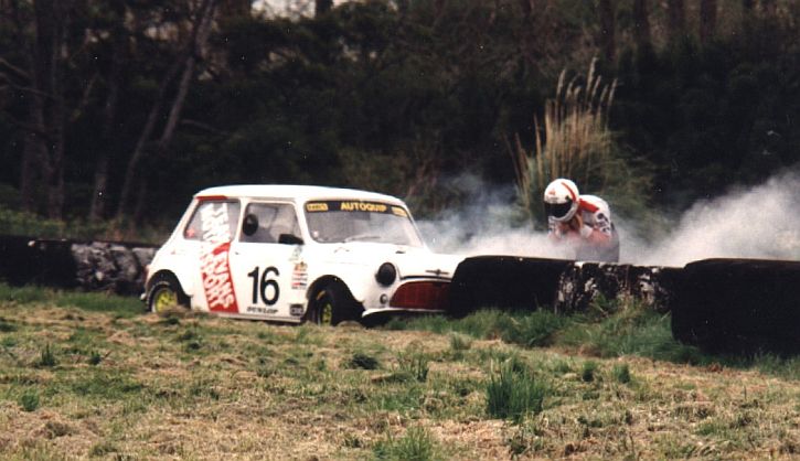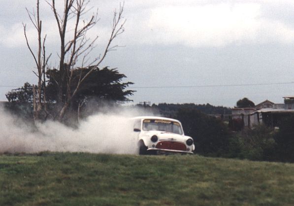This is what happens when the clutch in a Mini lets go at the end of the back straight at Pukekohe.