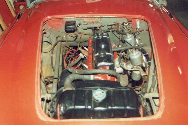 Under the bonnet, Ross Cammicks 3000, radiator is angled to accommodate Rack and Pinion Steering I believe, and the car had other mods over the years, especially after Ross travelled to the USA in 1982.