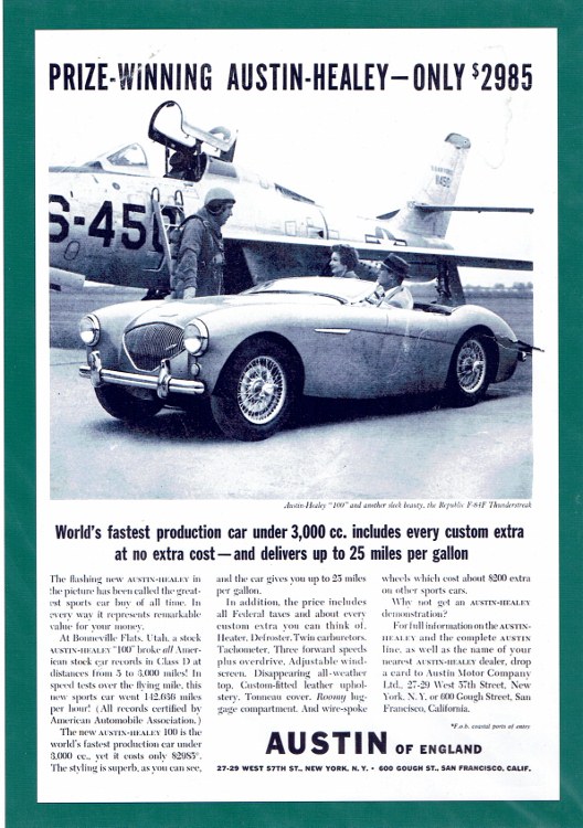 Austin of America " Austin of England " , my car had that badge on the rear, this would be 1953, ater the car was shown at the 1952 Earls Court, London Motor Show as a Healey then Leonard Lord head of Austin that became the fledgling BMC. Lord had it Austin - Healey badged, they raised the headlights slightly from the prototypes.