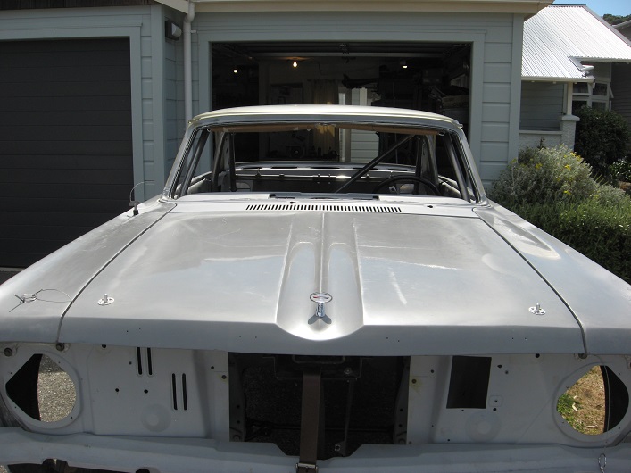 when the car is painted there will be some deflection showing on some panels in the form of some low spots particularly in the hood and the trunk lid I am doing the best job on the fenders and doors so that should be minimal, but still visible... if you look for it. That is how the "period" look of the car will be and it would have been back in the day. So that's how it will be built, complete with the leather strap on the front hood.