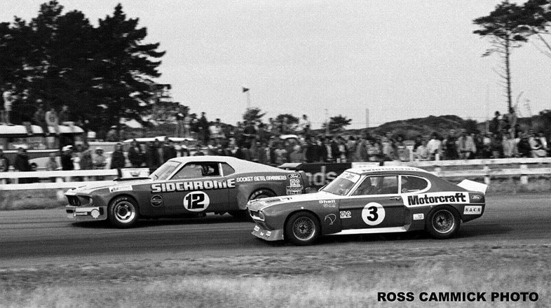 Richards in the Sidchrome Mustang versus Don Halliday in the Cosworth GAA Capri.