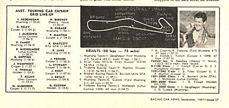These are three photos from a bunch of photos that Lynn Coppins, Rods sister, lent to me so I could scan them while she was here, between the two Festival weekends in January. Lynn lives in Perth, and came over to be with the rest of her family for Rods tribute and told me she throughly enjoyed herself over the two weekends, and was rapt at what the HMC group had done to honour Rod. The first photo is Rod with some silverware from his efforts in the Zephyr Corvette. The second photo is at Lakeside when Rod bought and ran the ex Ian `Big Pete' Geoghegan Mustang, prior to bringing it back to NZ. The bottom photo is of Rod washing an XK Jag outside the Coppins family home in Alfriston, just east of Manurewa.