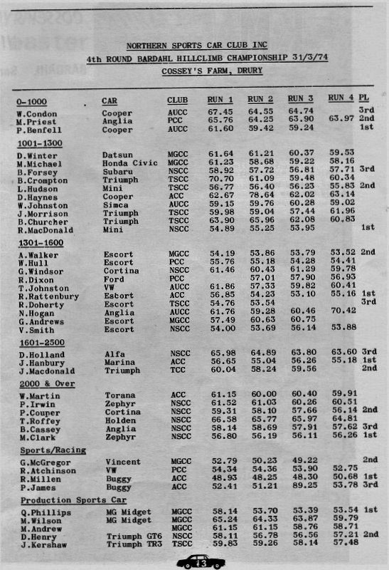 17th March 1974 was a Closed Club event, and at the end of the month was a Bardahl Series [ round 4 ] event.