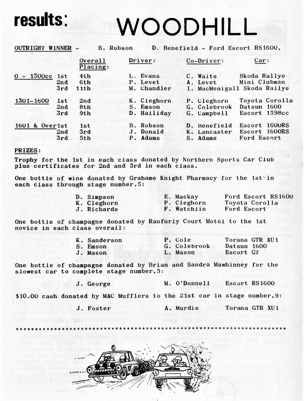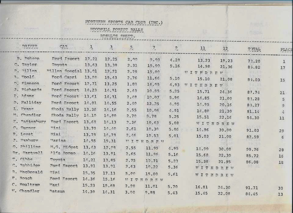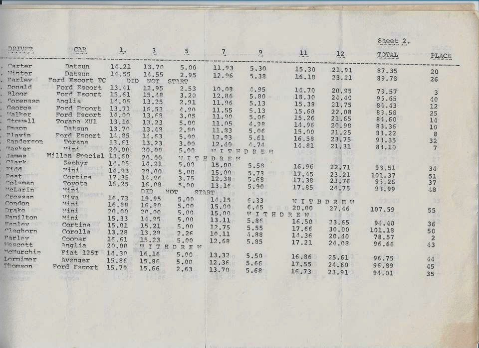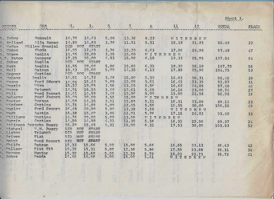 Some cars tie in with the results the Subaru and the Marina and probably the MG Midget - one of several MGCC competitors in the Sports car Class. The Triumph GT6 indicated as Pat Boyer, by the Fb page notes but not in the entry list.