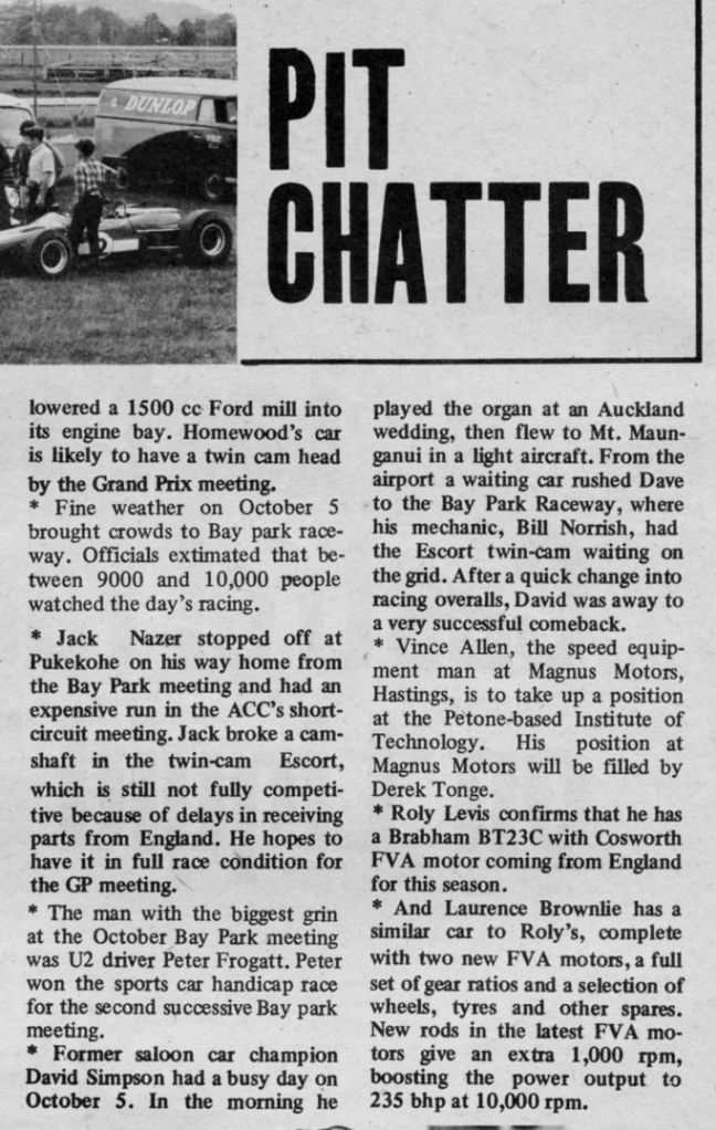 The only Bay Park event in October 1968 that I have been able to find is a minor Tauranga Car Club meeting held on October 5. I don't have a programme nor did Motorman have a report.
