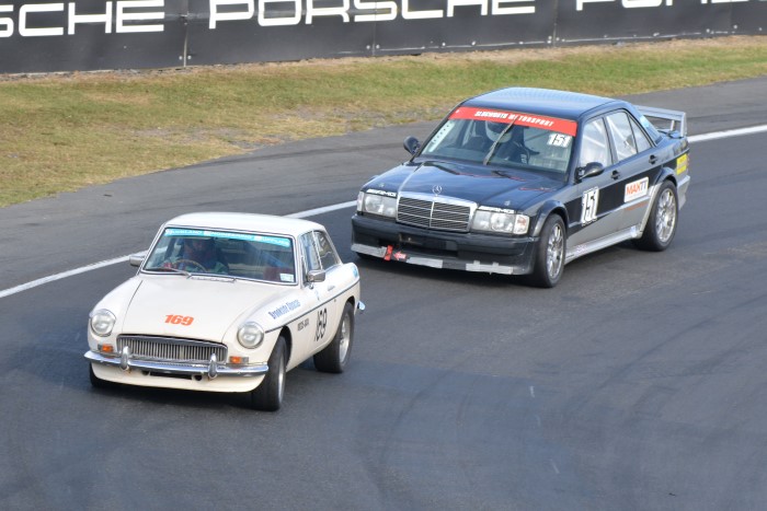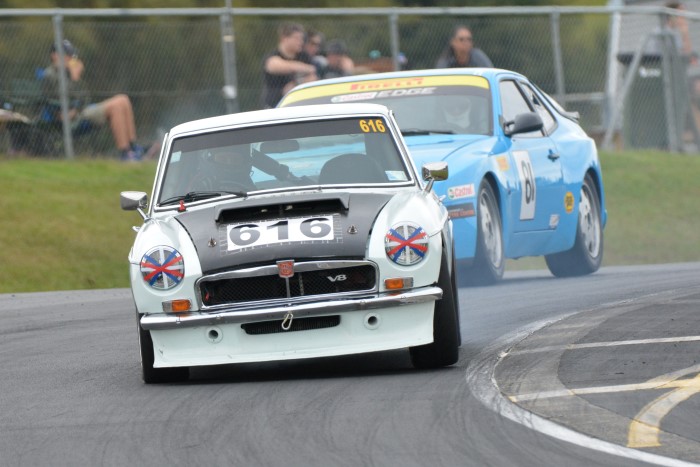 Dave Mallin's genuine factory MG BV8 GT, formerly raced in the earlier days of the series by Harley Norager, where it famously earned the distinction of the first series car to be black flagged and a drive through penalty for breaking the speed bar. Another top driver. Good car attitude.