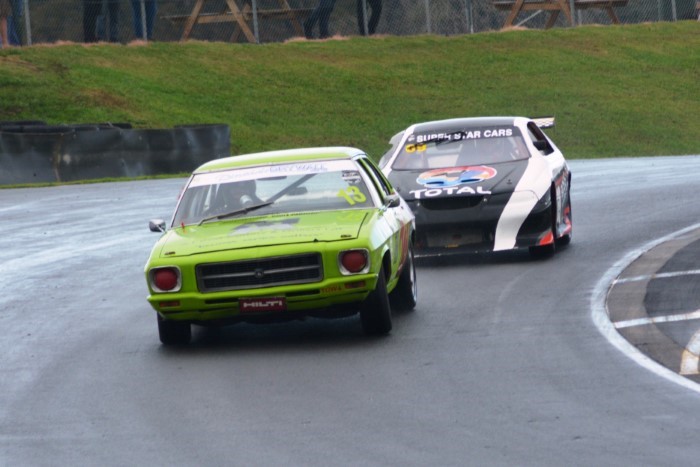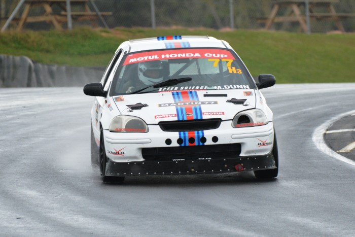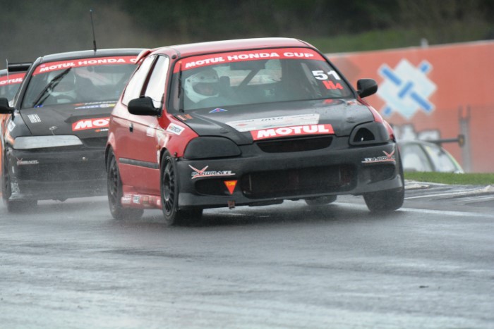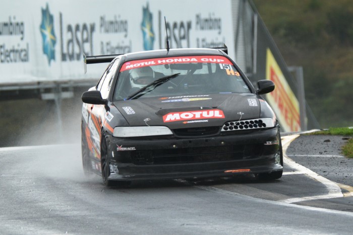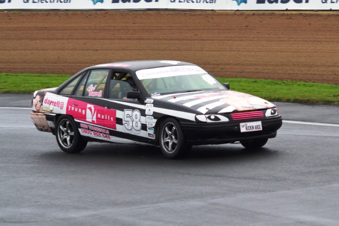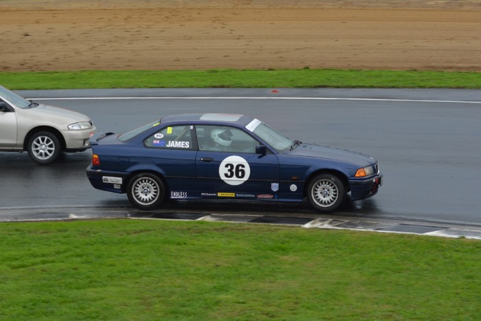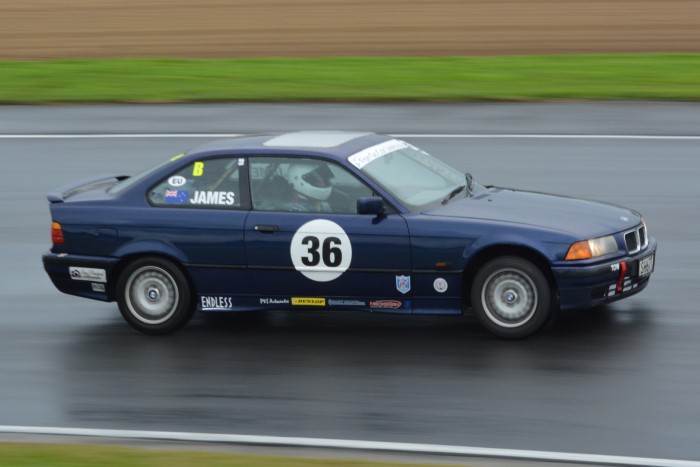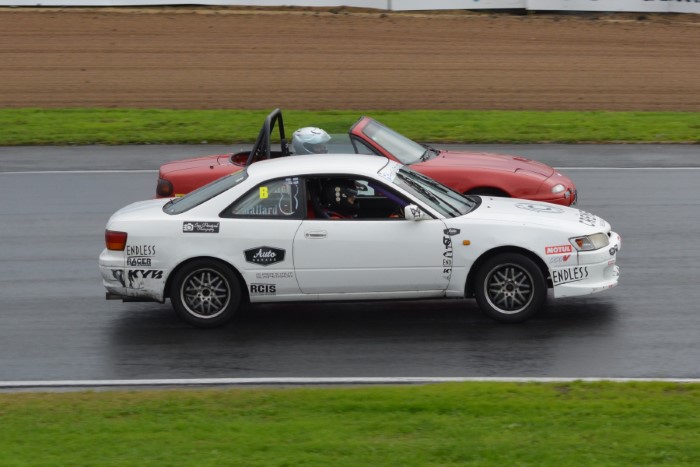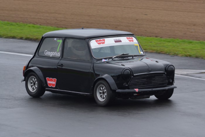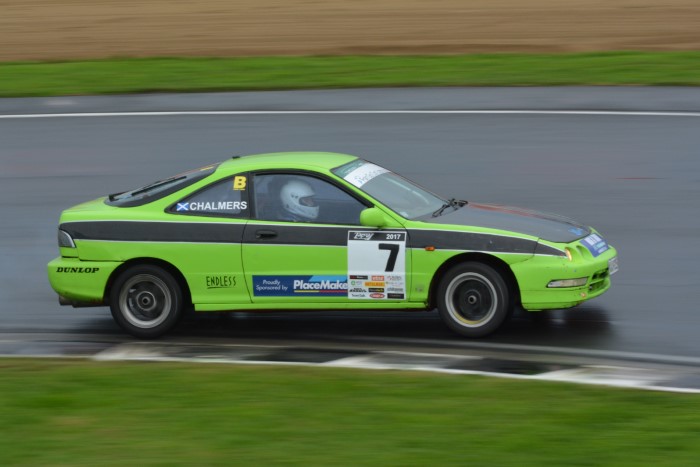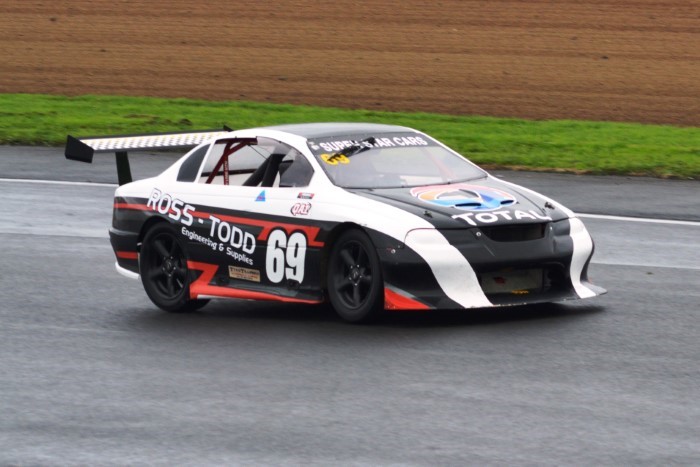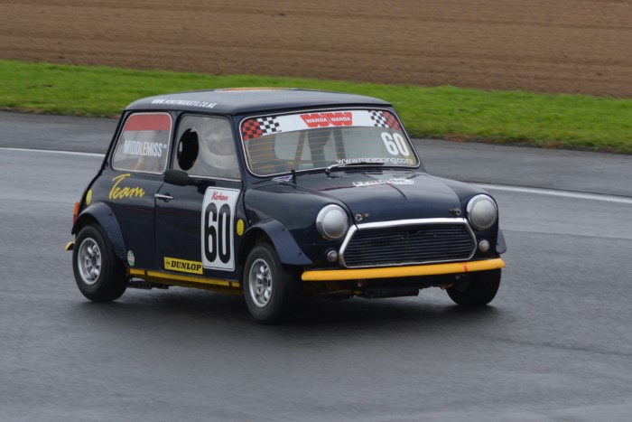 HRC Series Finale, two day meeting. Just the Sunday for me as the Hooters cars were only doing Sunday. Wet practice, so a good opportunity to try out the waterproof cover I'd made for the camera. It seemed to work OK but the monopod, fully extended, is a few inches too low for me.