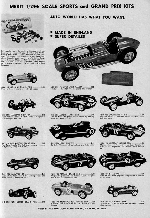 Just for a change, and before the June Caffeine & Classics meet, I fished out Dad's Merit (plastic) car kits. Unfortunately, one or two need a bit of remedial work so when I have sourced a new tube of glue, I'll put them back together and photograph them too. Thanks to Bill H, I have started bidding on EBAY on an unbuilt kit of the Talbot Lago, now under the SMER label. No doubt I'll be grabbing the Alfa too, the only ones Merit did with engine detail. Yes, spoked wheels are rubbish, but at 7/6 in old money, pretty good kits. The ones with engine detail were a little more expensive - but all were well outside my 2/- a week pocket money.
