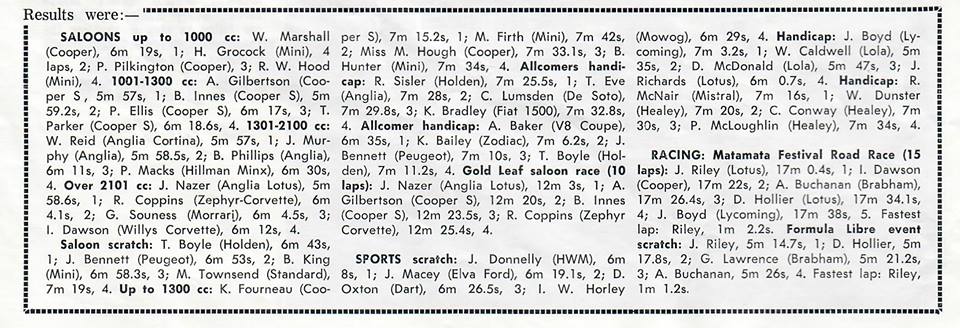 The 1964 Report - results from Graham Woods archives - probably from Motorman.