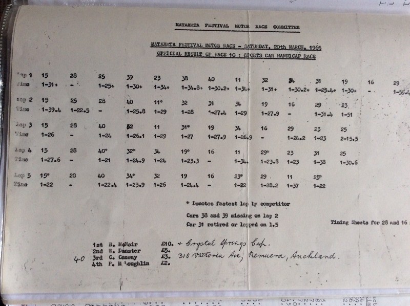Keiron also had this a handwritten list of entries for race #13 The Matamata Festival Road Race;