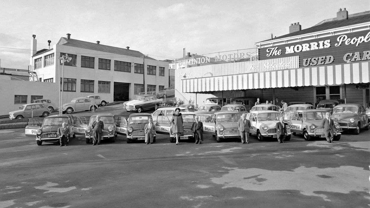 These people were evidently in a theatre production showing at the time. Great period photos of Minis at Dominion Motors, all on the old style rego plates.