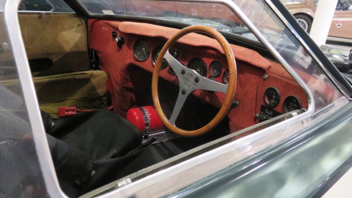 Rover-BRM cockpit. Note - no cage but a modern fire extinguisher.