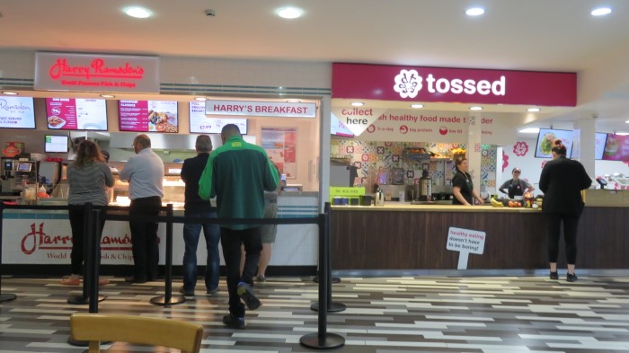 Motorway stops in the UK have improved considerably since the appalling stuff offered from 1959. Harry Ramsden's is best known as a fish and chip franchise, but I thought it somewhat ironic that they had a good continuous queue for their traditional British Breakfast - but the so called healthy option next door, didn't. HR's was quite a good breakfast too.