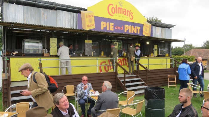 The other good stop, just behind Woodcote corner was the very tasty steak and ale pie, with mash and mushy peas - washed down with a local cider.