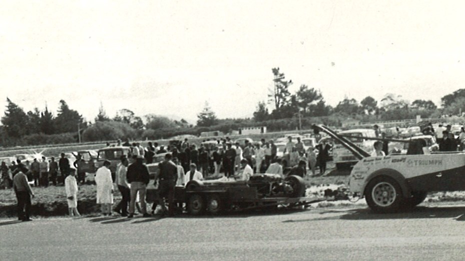 Shocking, I was marshalling that day at the flag point on the inside entering the back straight and Thomasen's Brabham crashed right beside us, he had spun exiting the Rothmans sweeper and when he hit the earth bank on the inside it flipped and because in those days belts weren't compulsory, he started to emerge from the car as it flipped and rolled, so he was half-way out when the car landed with a thump upside down. Naturally we feared the worst so it was some relief to find he was able to be saved, but sadly he had suffered significant spinal damage. A tragedy for the young bloke but he could easily have paid the ultimate price....fortunately belts became a prerequisite shortly thereafter. I think that's me behind the Brabham's rollbar in the pic.