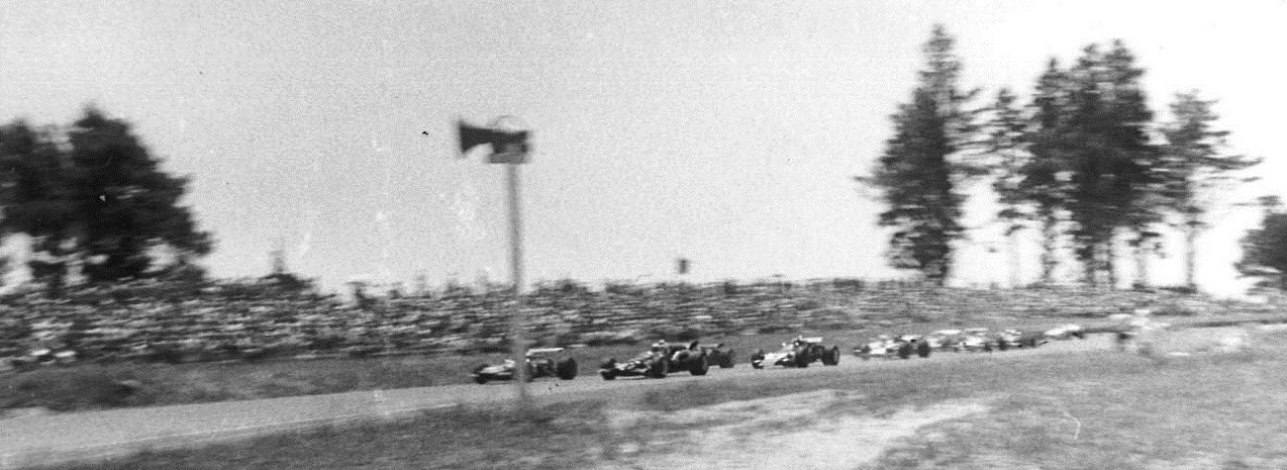 Along the back straight in October 1969 which was a fun day until the terrible incident when Barry Thomason's Brabham spun and rolled entering the straight and the roll bar caused injuries to his back and neck from which he never fully recovered.