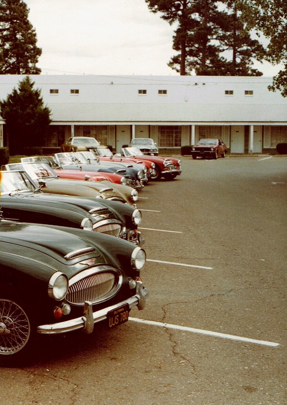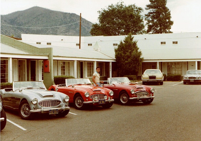 The line up Healeys that Lincoln the Jaguar and the Datsun .. the Datsun had trouble keeping up in the run through Colorado [ the 55mph speed limit was advisory only to our group ]
