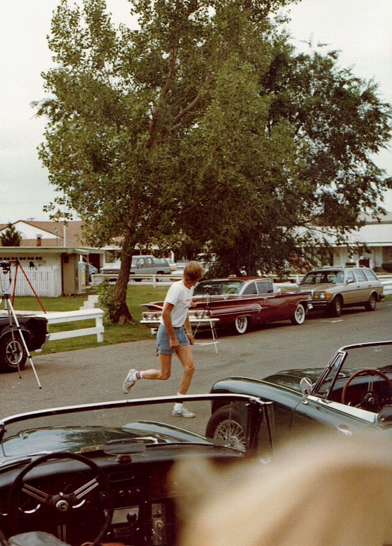 Sprinting to his Healey Hans Nohr, and a great looking 1961-62 Chev Coupe. having set up camera's for pictures of the groups cars.