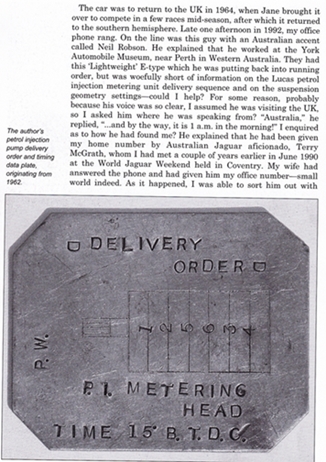 The above article is out of a book "Cat out of the Bag" by Peter D Wilson, a mechanic in the Competitions dept, Jaguar Browns Road from 1961 to 1966.