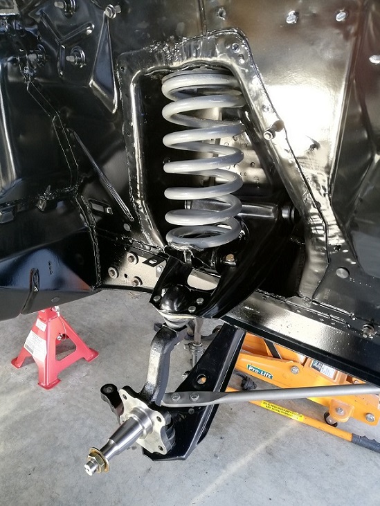 The rest of my parts arrived yesterday from USA, so I could get on with the front suspension. I fitted the upper and lower control arms, new springs, restored the torsion bar, and fitted the HD spindles.