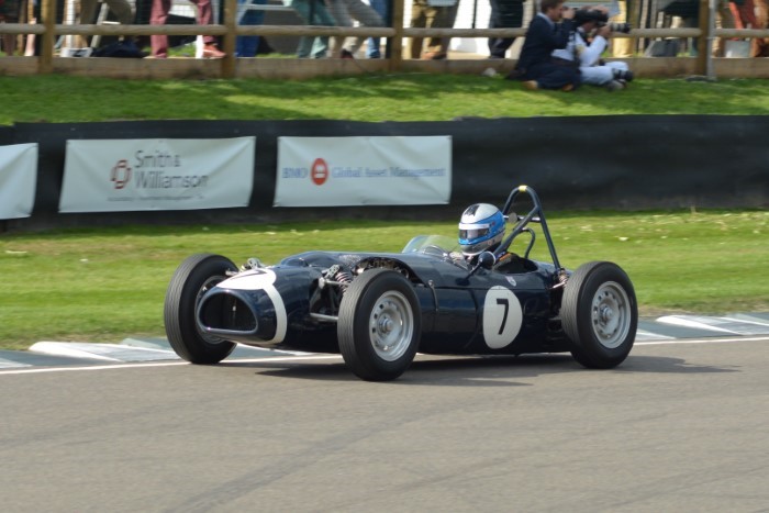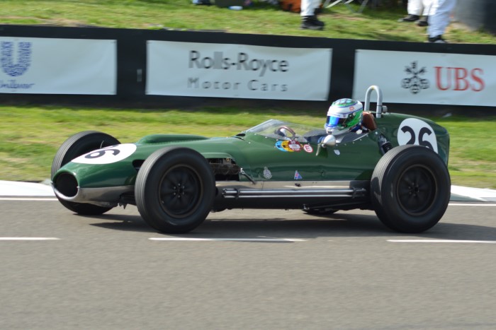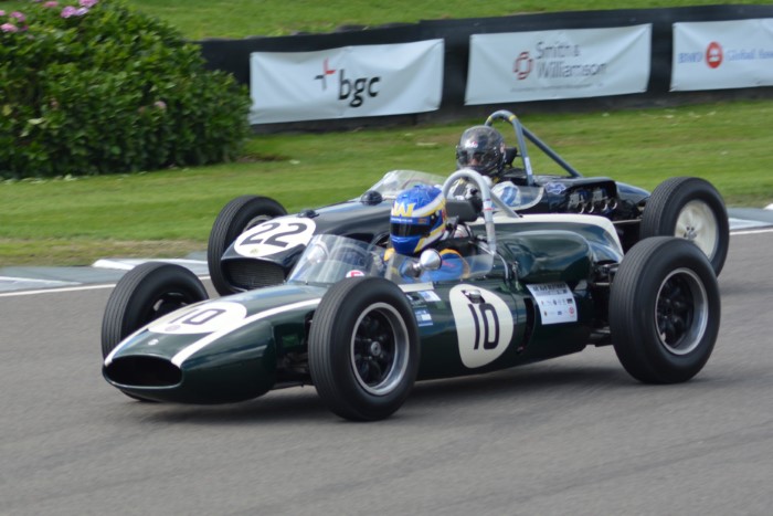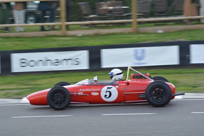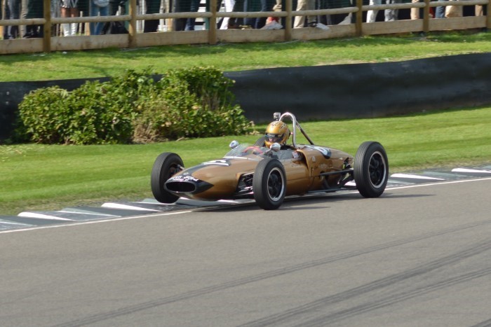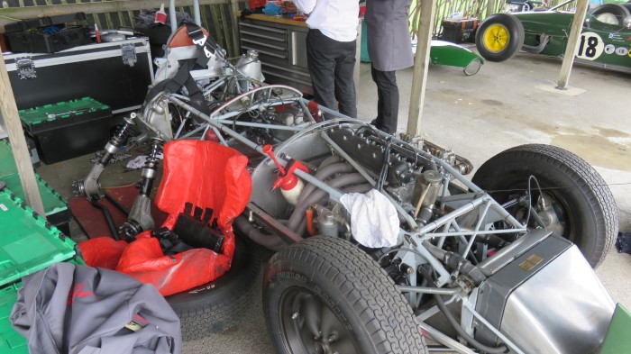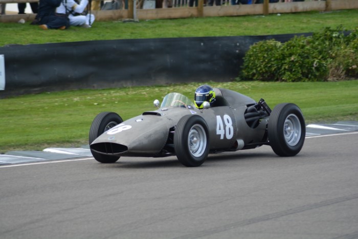 The ex-Dan Gurney BRM P48, going very well too. Magnesium body built by Hall & Hall and owned by Robs Lamplough. The programme has him down as the driver but this may be Ben Mitchell.