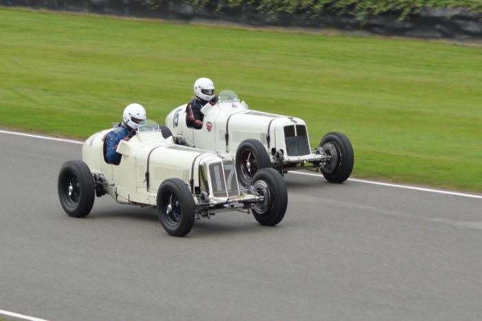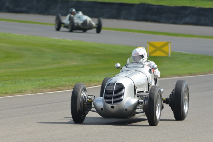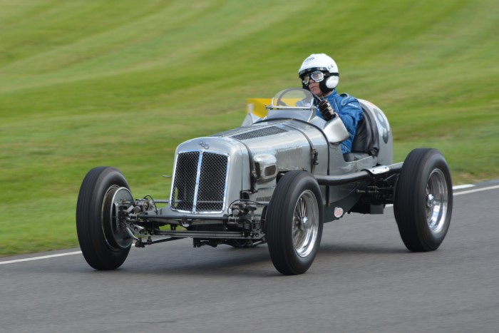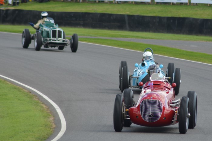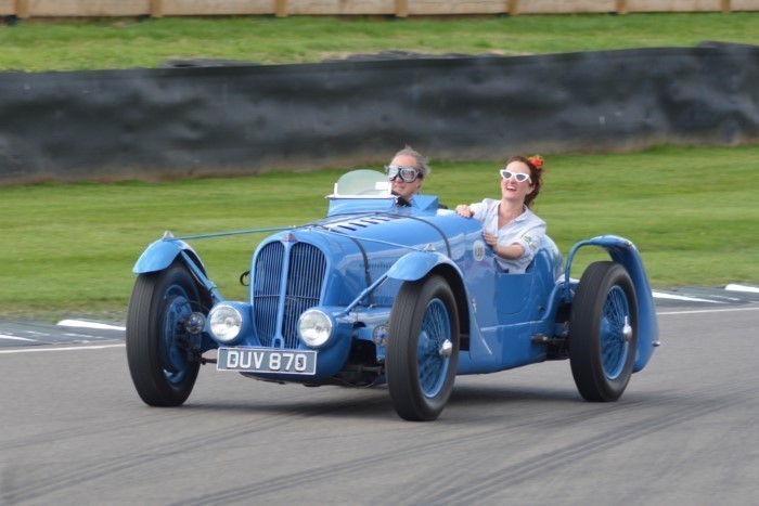 Ludo Lindsay with 'Remus', one of the most raced cars of all time, in the winners parade. It was also the first race winner at the 1998 inaugural Revival meeting and even competed at the first Goodwood meeting in 1948. The car has won no less than 6 races at the Revivals. The car was raced for many years by Ludovic's father, the Hon Patrick Lindsay - usually wearing a trademark red shirt!