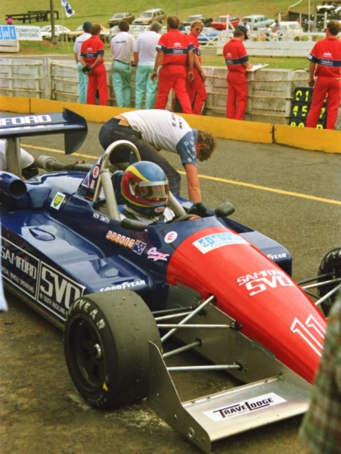 I'm, now pretty sure it is 1987, but the race programme has car #14 down as Grant Bowring in a Buckler DD2. The only thing I can think of is that it maybe car 54.