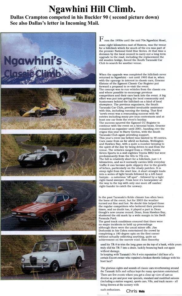 A few Bucklers in New Zealand, have gone overseas, so it is good to know these ones are still here and being used as intended with some Motorsport.