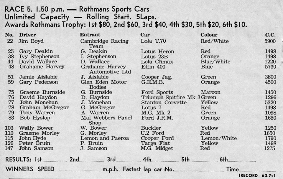 Milan wrote " This could be the race shown above. It was held on March 8, 1970 at Pukekohe. "