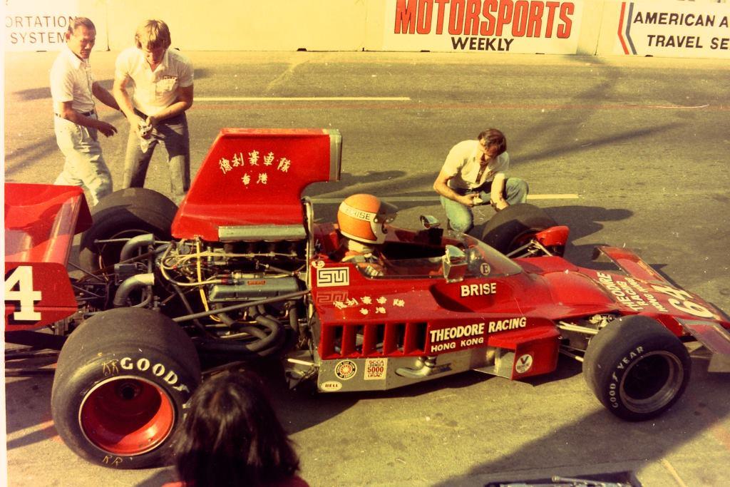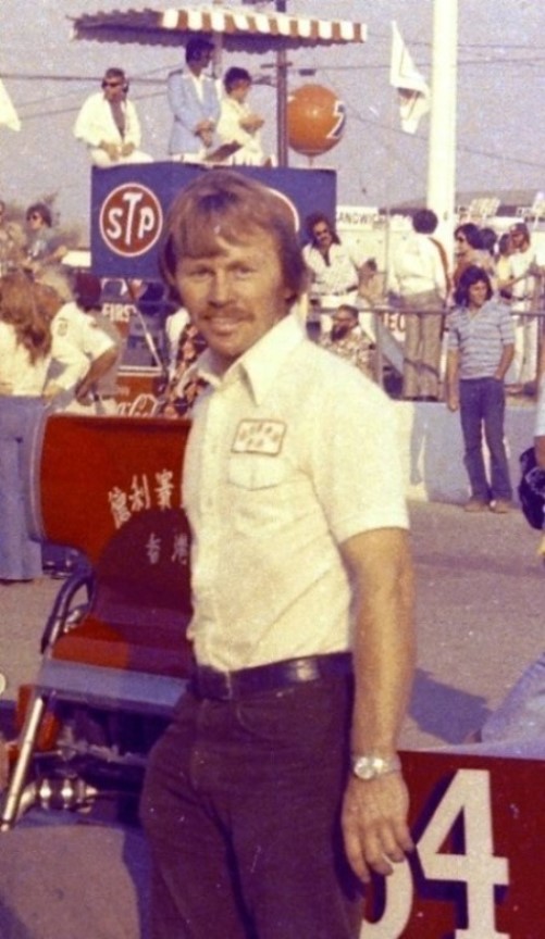 No mate. That's actually the next marshal's post in advance, halfway down the back straight, you can see the quarter-mile straight, the back of the pits and the right-hander in the background. I did flag at this spot for that year's F5000 Christmas meeting, and stood trackside with Lawrence, Goth, Grable and co whistling beneath my fluttering blue flag. OK I might have had jandals on my feet, but I had the mandatory White Coat...