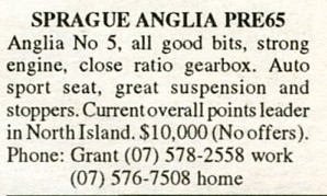 Grant, the mans name was Tim Buxton.........ruined a historic car and turned it into a 'hot rod'....... Dont know where it is now, but the son, Darren took it over. It will lying in a shed somewhere.......a heap of junk. At the Taupo meetings, the engine was lucky to last a couple of laps.......I think I know who the engine builder was but my lips are sealed... :)