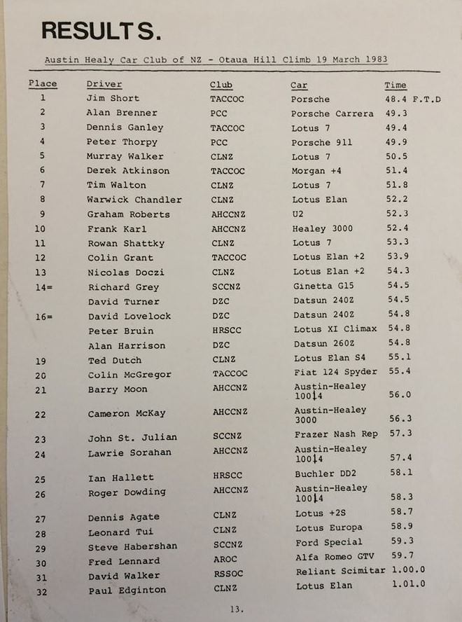 Finally have a copy of the results of the 1983 event, the only year I raced in my Healey 100/4..