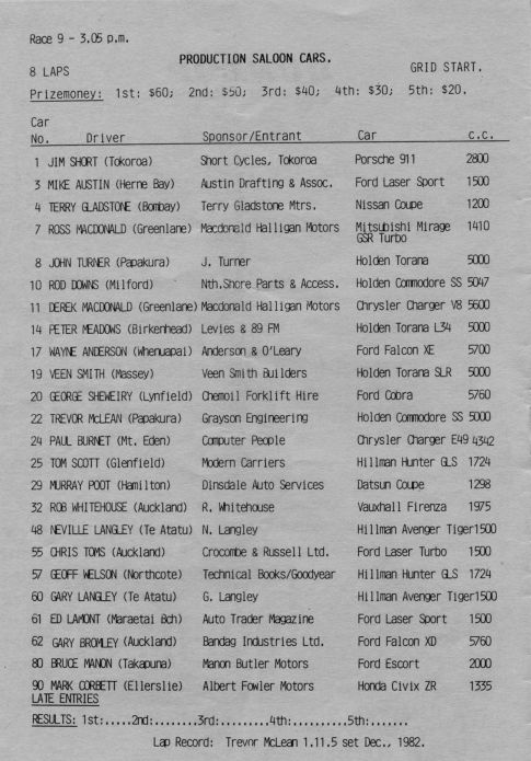 Tony Alderton E49 Charger #49 was entered in the Production Super Car races on March 27th 1983.