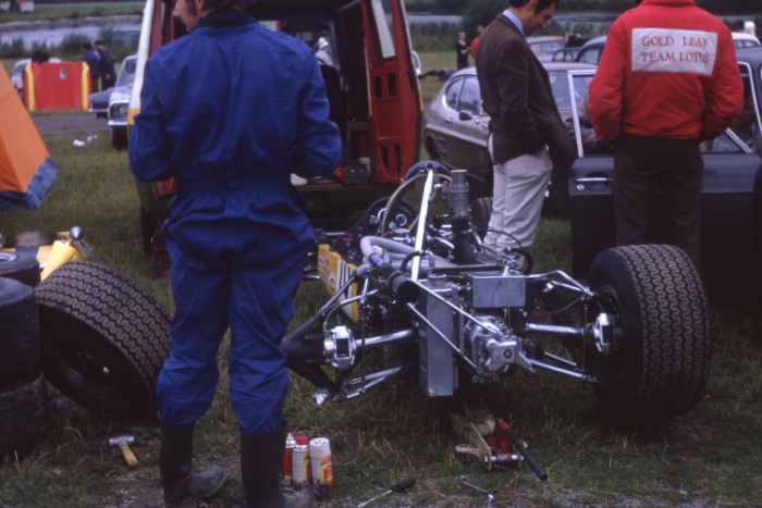 Formula 3 Lotuses. Flash paddock facilities back in 1970...