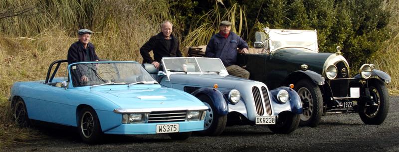 Notes from an Otago Daily Times article that the photo [ cropped ] appeared " The retired Bennett brothers helped each other building this trio of vehicles. Photo by Gerard O'Brien "