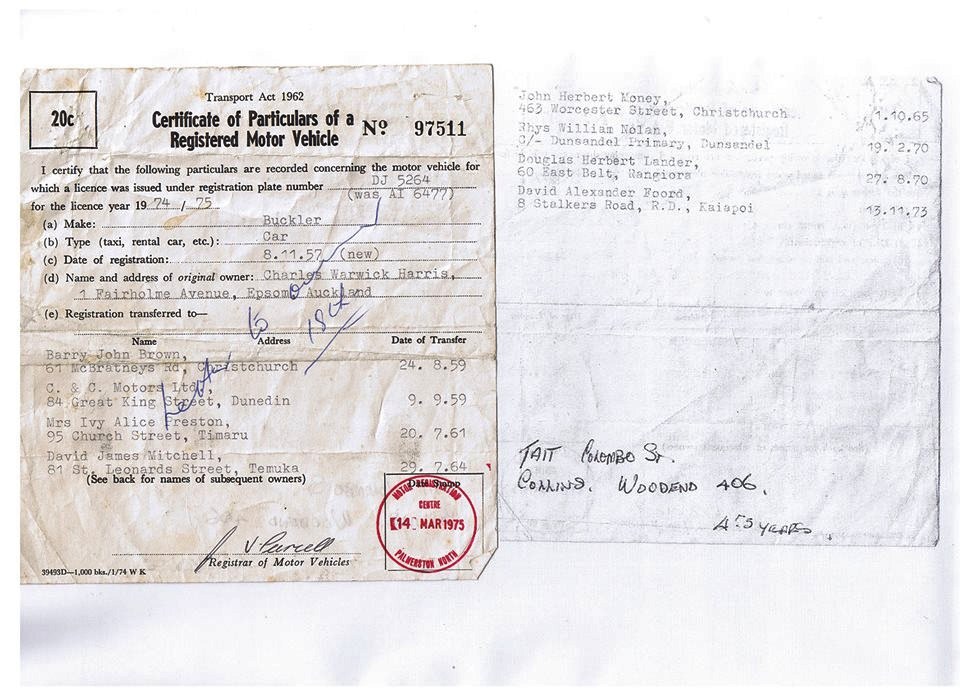 Posted my photo from the April 1966 meeting at Pukekohe with the Orchid Special [ with that beautiful Ferris De Joux body ] and a couple of Bucklers [ De Joux bodied also ]. The Buckler on the right has plate FE9637 and is the car that was owned by Owen Cullen, having been with Vic Simkin previously.