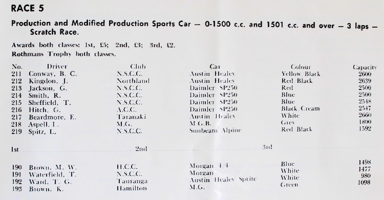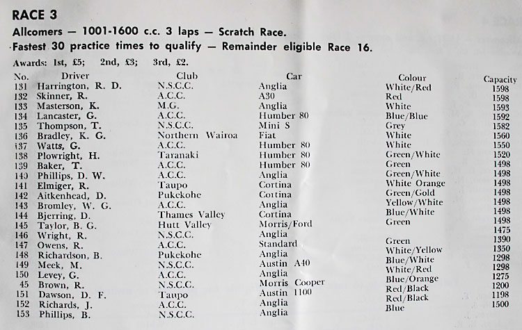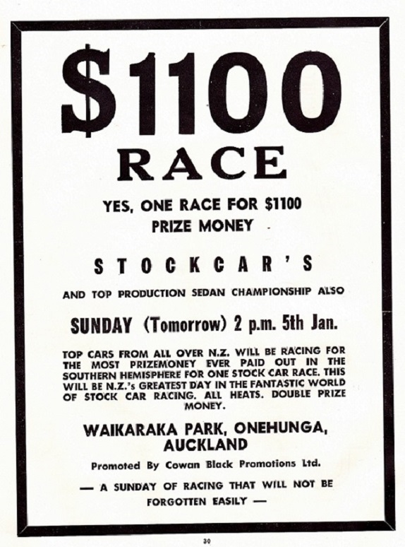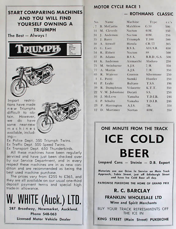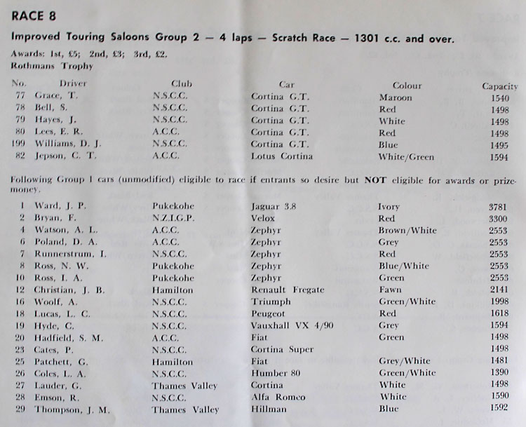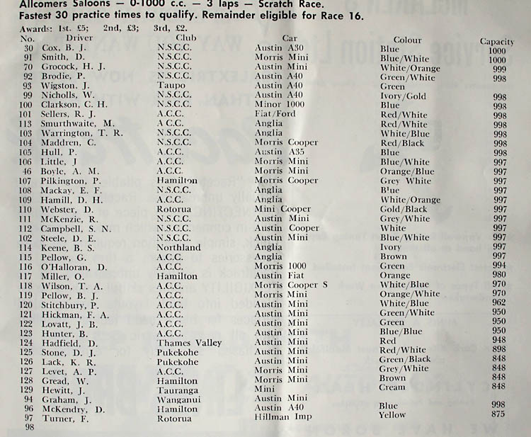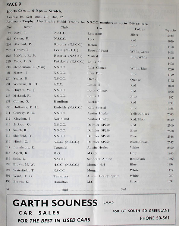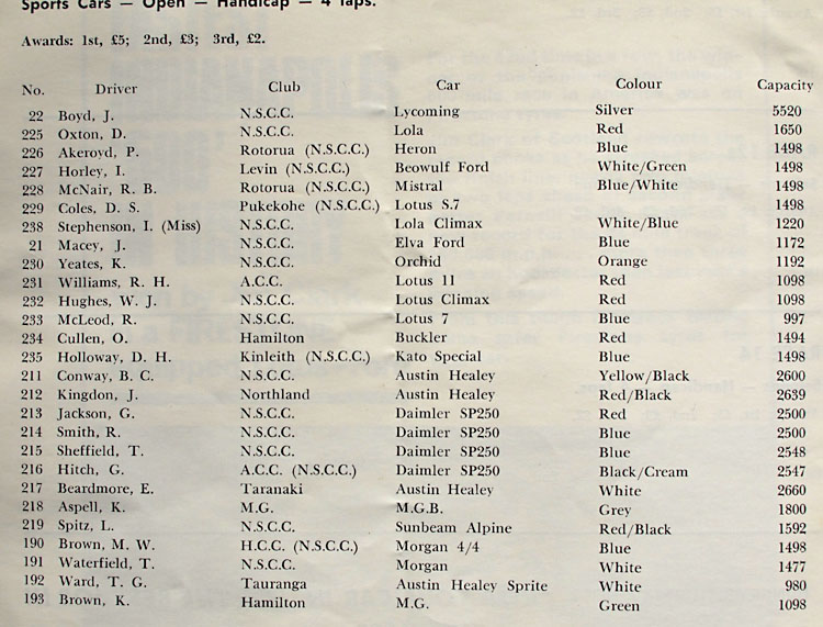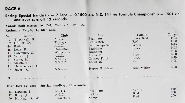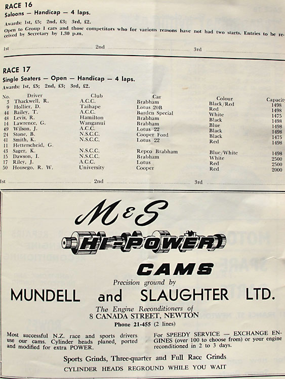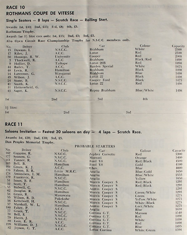 I gave all mine away Programs [ Pukekohe 1965 to around 1983/4 and several from Baypark mid 70's ] to Rhys Jones, the Motorcycle Racer and Author of the book, " On Track - A history of Motor Racing at Pukekohe " published in 2008, I have an Autographed copy from Rhys.