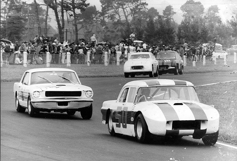 and another Mustang - Red Dawson over Rothmans nose up - 1968-69 photo Jack Inwood taken from Old New Zealand Motor Racing Facebook page - post by Gerard Richards ..