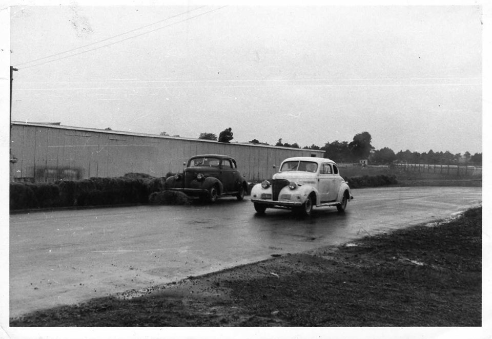 Found this picture in an old Motorman mag(June 1963). Looks like the same incident from the other side of the track. Car 70 is Frank Stephen, and the program identifies car 72 as Trevor Horncy. Stephen must have got going again quickly to finish a few places behind Stephen. A few other more familiar names were racing Ford or Chevy V8's around this time - Jack Nazer, Gary Pedersen(with "rookie" stripes which was the fashion at the time) Harvey and Souness. Which of the 3 damp spectators took the above photo?