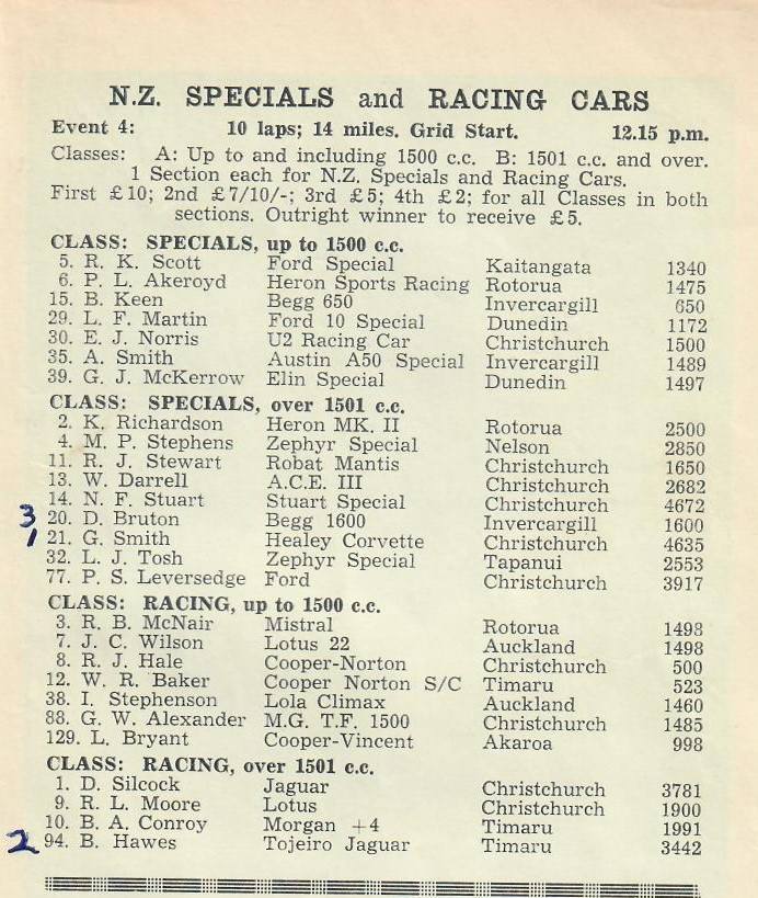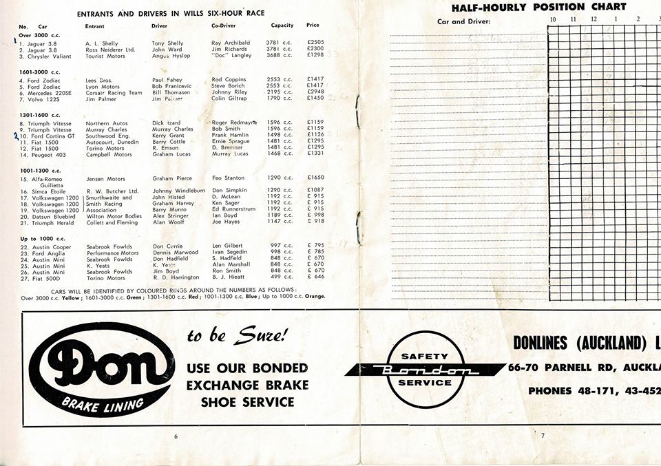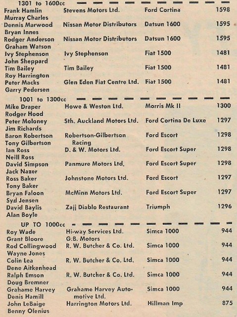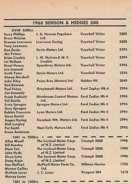 Posted by Graham Woods on Fb " Old New Zealand Motor Racing " page - extracts from the 1968 B and H meeting, the entrants to the big race and also the Group 5, small saloons.
