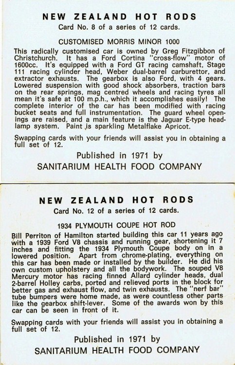 Hot Rods - in New Zealand shows late '60s / early , a card series 1971